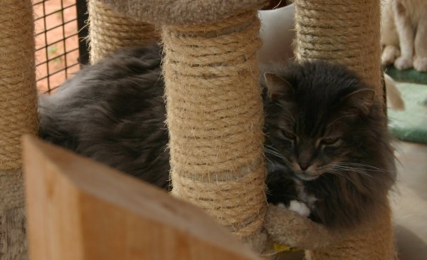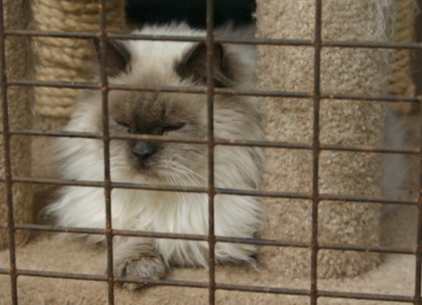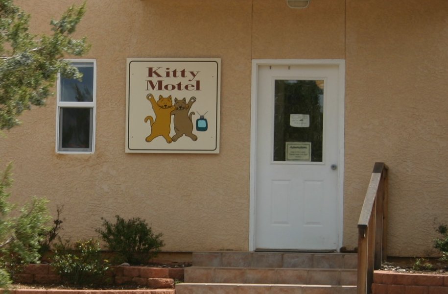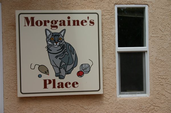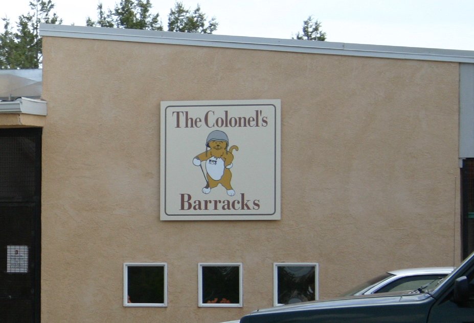 There were different buildings with outdoor runs set up for different types of cats.. There was a building for kittens, feral cats, those that were FIV positive, incontenent, and some cats that were pretty old. Each building has a special name. There is a story behind the Colonel's Barracks concerning a cat and some chickens.