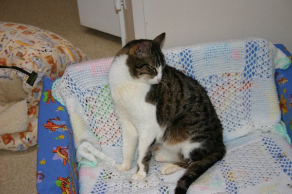 My favorite place of all was the "Kitty Hotel".... The cats there were either without back legs or back legs that didn't work, but they were so happy for my attention when I walked through the door of the "hotel".... I was ready to take them all home with me. There were 2 that just really stole my heart: One was named Bumper who couldn't use his back legs and there was Scooter born without back legs. They really seemed like a couple of happy guys... When I came through the door, they both got all excited and scooted over to me as fast as they could..... I just sat on the floor and they just loved my attention and I loved theirs.