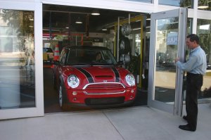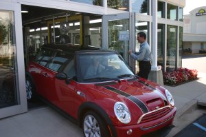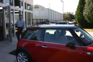 10/25/2006 Mom picked me up today in Greenville, SC. I was on the showroom floor when she arrived and she drove me off of it.. On the way home we pulled up along side another red MINI they were excited to see us pointing and waiving..