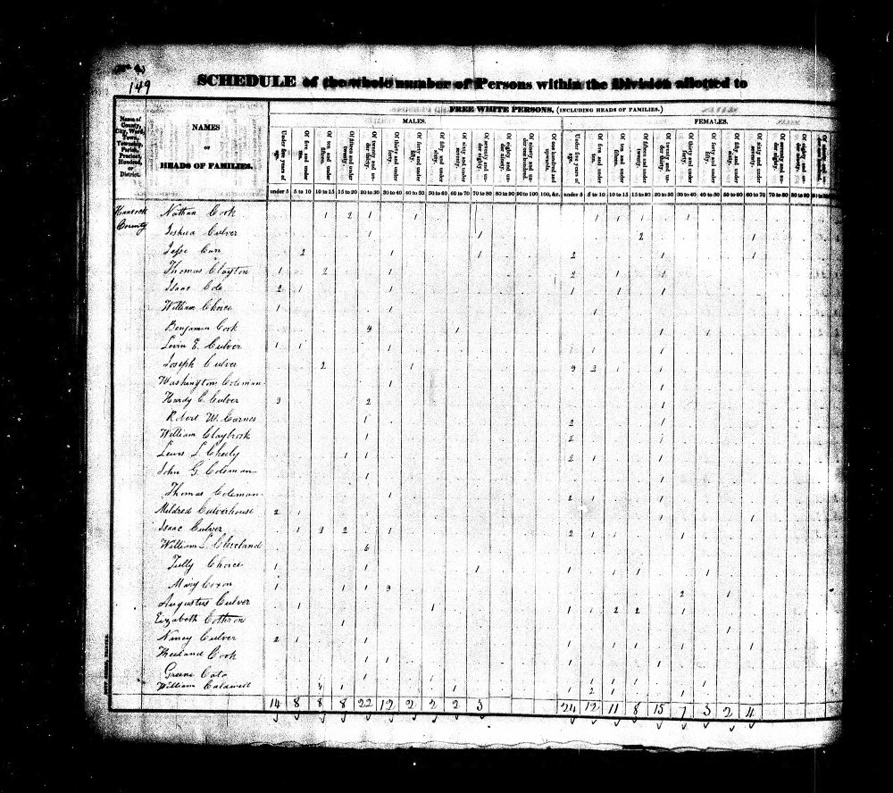 <1 b. 01 Jan 1820, Eunice 9 b. 11 Apr 1811, Nancy 13 b.