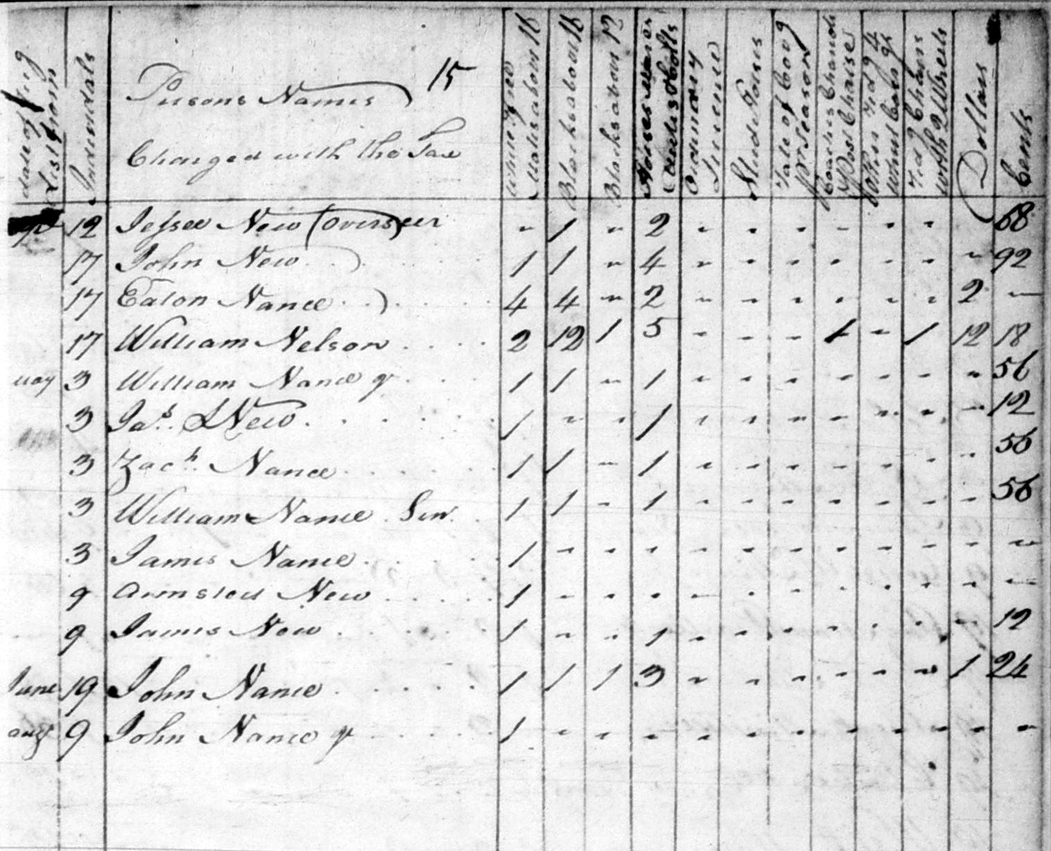 John NANCE Between Deep and Cellar Creek1748 VA TITHABLES