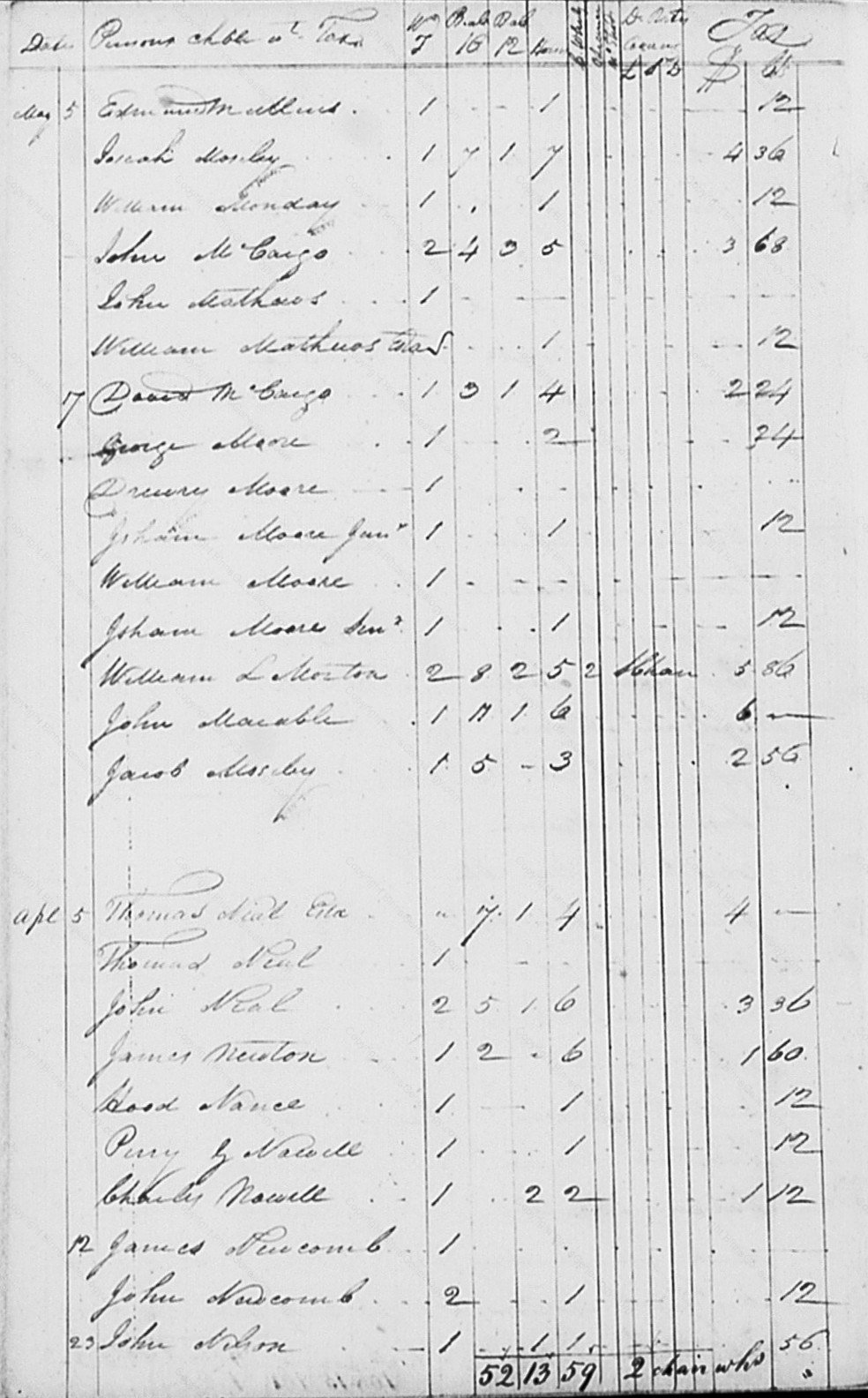 A list of the tithables below Deep Creek in Amelia County for the year 17361737 VA TAX LIST
