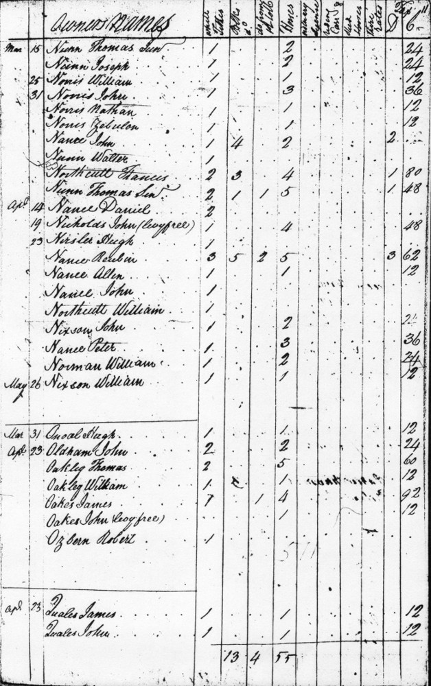 John NANCE, Sr. 2 tithables Deep Creek to the extent of the county downward1738 VA TAX LIST