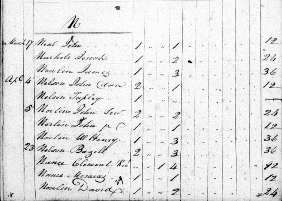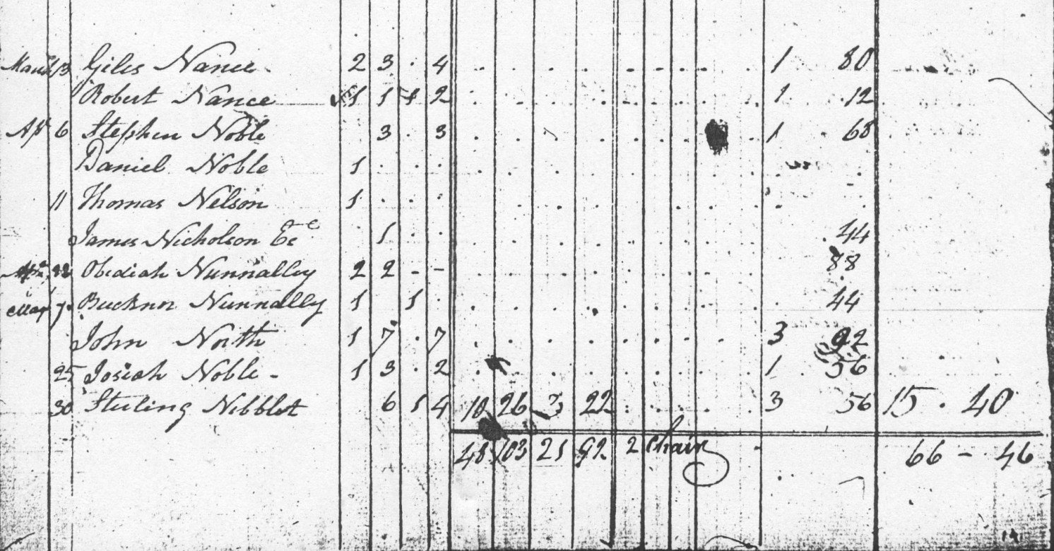 John NANCE, Sr. Below Deep Creek in Raleigh Parish1741 VA TAX LIST