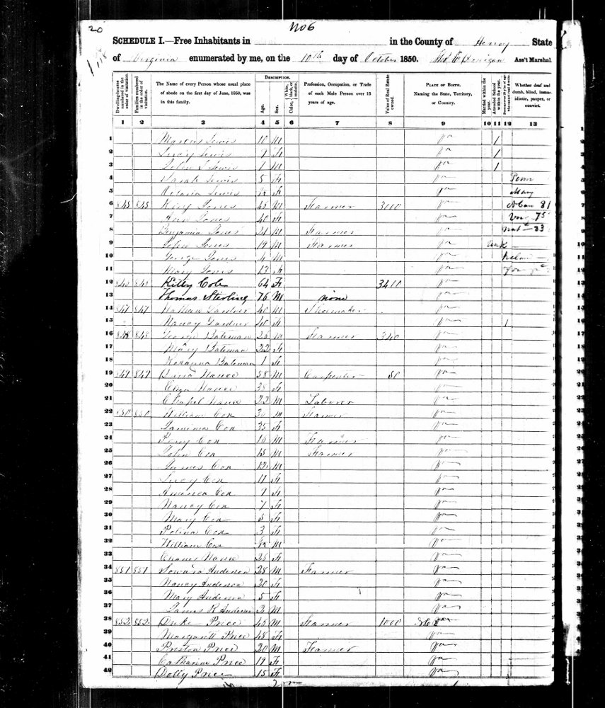 HARVEY, Wife, F, W, 50, Marr., Virginia