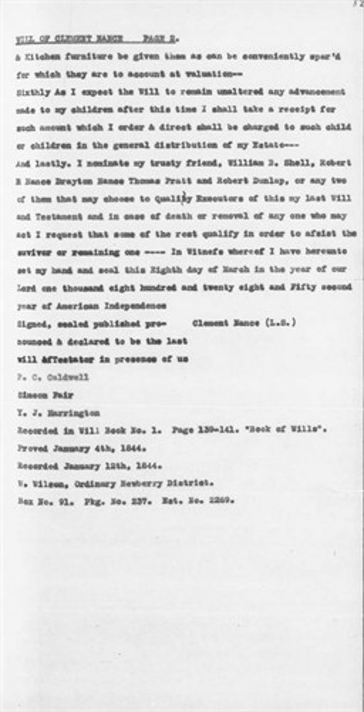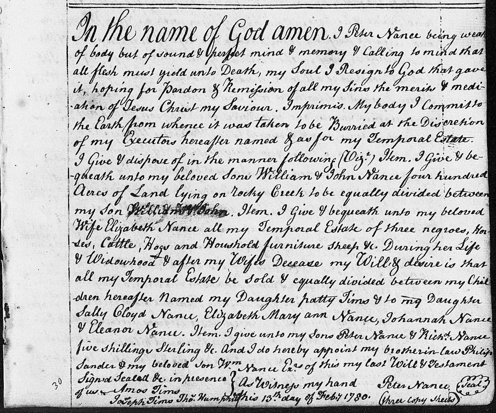 NANCE. Wife Elizabeth. Sons William, Pete,