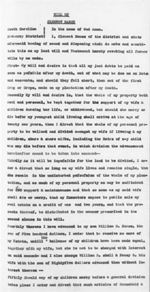 Item I give and bequeath unto my beloved wife Elizabeth Nance
