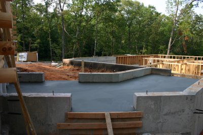 July 24, 2007 - Some more framing for the apartment done. Cement poured for flooring in garage.