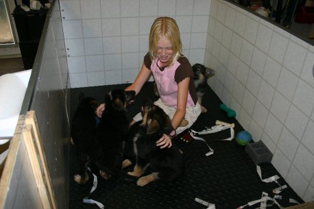 The simulation process begins with Tessa! Instant gratification for both Tessa and the pups!