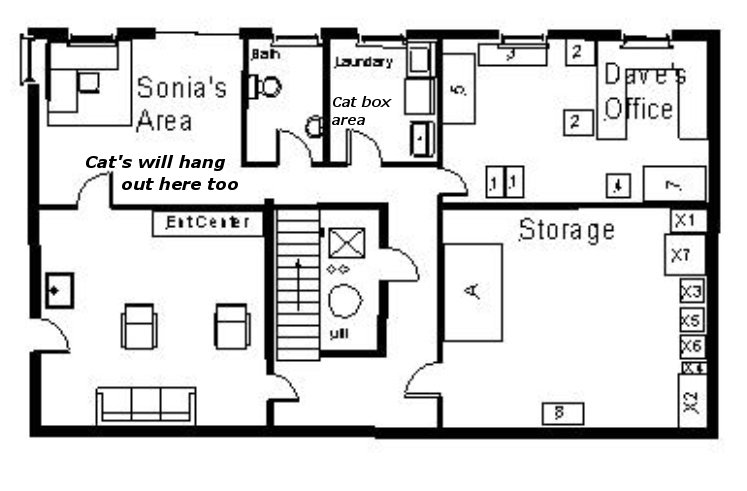 April 4, 2007 - Dave and I staked out where house and garage would go. We had to move previous markers because too close to property line and wanted to allow for a back porch and a sunroom/solarium off "Sonia/Cat's Area" for me and the kitties.