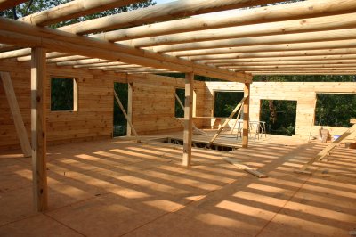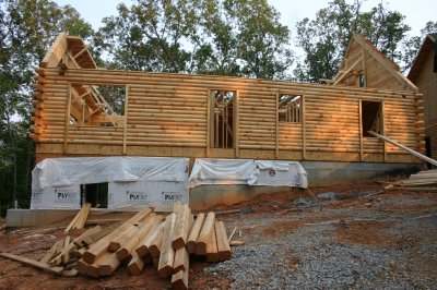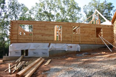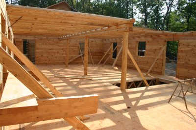 Aug 1, 2007 - They stared putting logs on the house and added flooring. Framing done around garage openings.