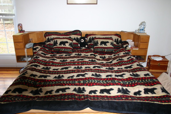 Dec 25, 2007 - More stones being added to interior fireplace. Some of the driveway wall started. My mom got us the bear bedding and stuffed TY bear.