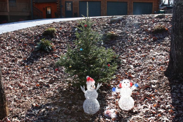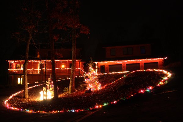 - Christmas photos.. This is the house at night all decorated for Christmas, and a picture of a, Fraser Fir, christmas tree Dave and our neighbor Gus went and got in North Carolina. Also the inside with tree and presents.