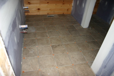 Jan 12-13, 2008 - Some tiles installed in bethrooms