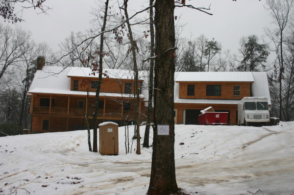 Jan 18, 2008 - It's snowing again. and cold... but work goes on.. Dave got a fire going in fireplace. Breezeway tiles done except for the grout. Most of the doors are hung in the house.