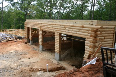 July 16, 2007 - Wheeeeeeeeeeeee!! They started adding the logs to the garage.. Dave met with guy who will be ding trusses and talked with an electrician