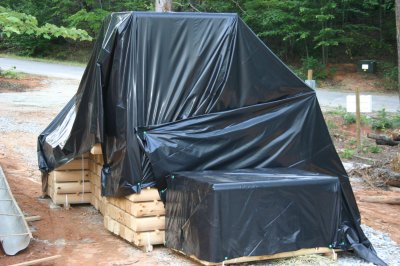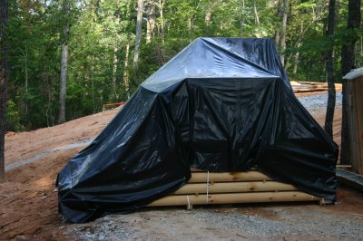 June 22, 2007 - Logs were delivered.. It's scattered under tarps all over the yard.