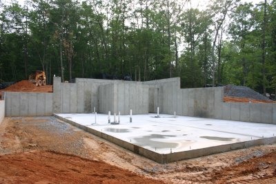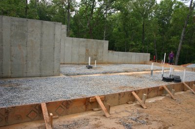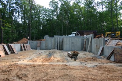 June 21, 2007 - Concrete was poured... We have basement walls!. Got a call from Southland today looks like there will only be 5 trucks delivering house.