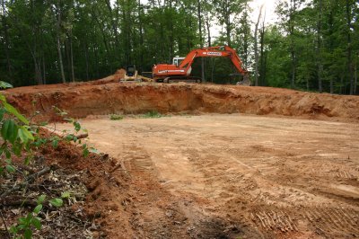 June 5, 2007 - More land was cleared. Above are the pictures of the land being dug out for the garage (top) and the house (bottom two). We also got final plans for house see links below for full details.