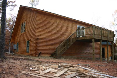 Nov 2-7, 2007 - More wiring for electronics done. Talked with guy about doing chimney. Waiting on plumber so we can get an inspection done. Suppose to have staining of the outside started this week.
